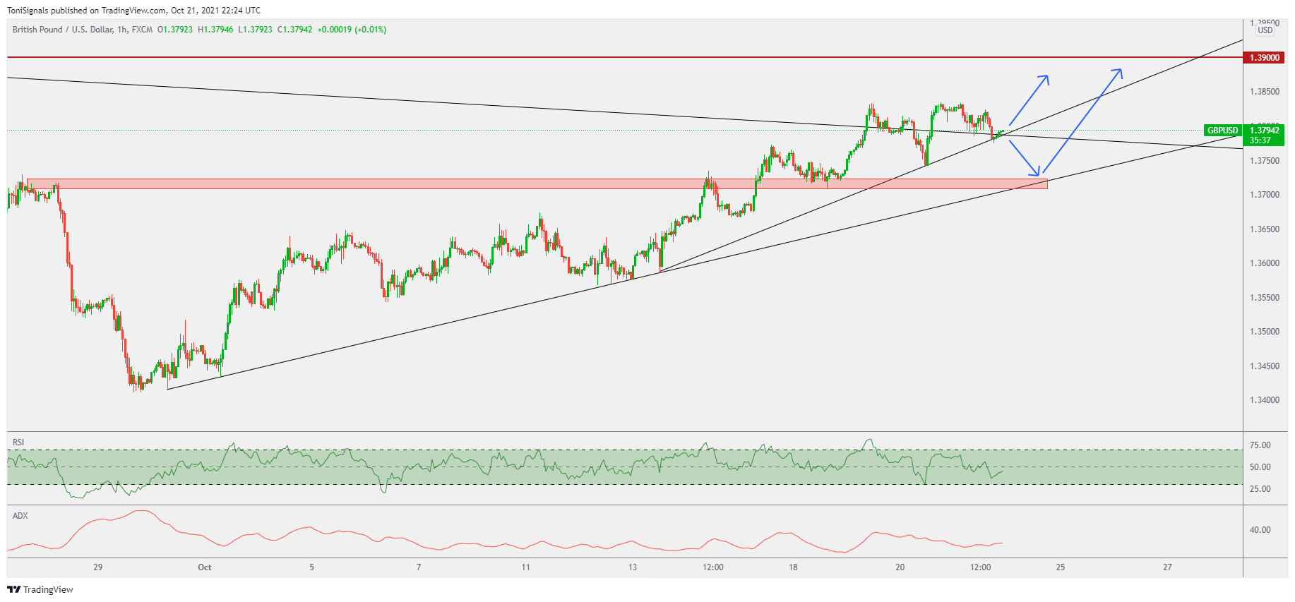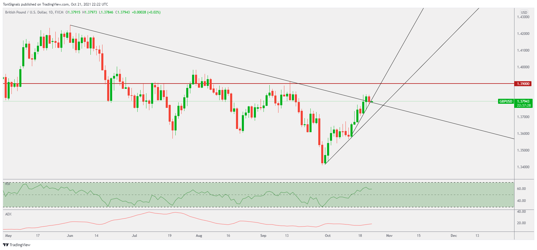 Similar to other USD quote pairs, GBPUSD has done a break out and retest pattern of the resistance trendline. Both support trendlines still hold, and the daily RSI is still bullish.