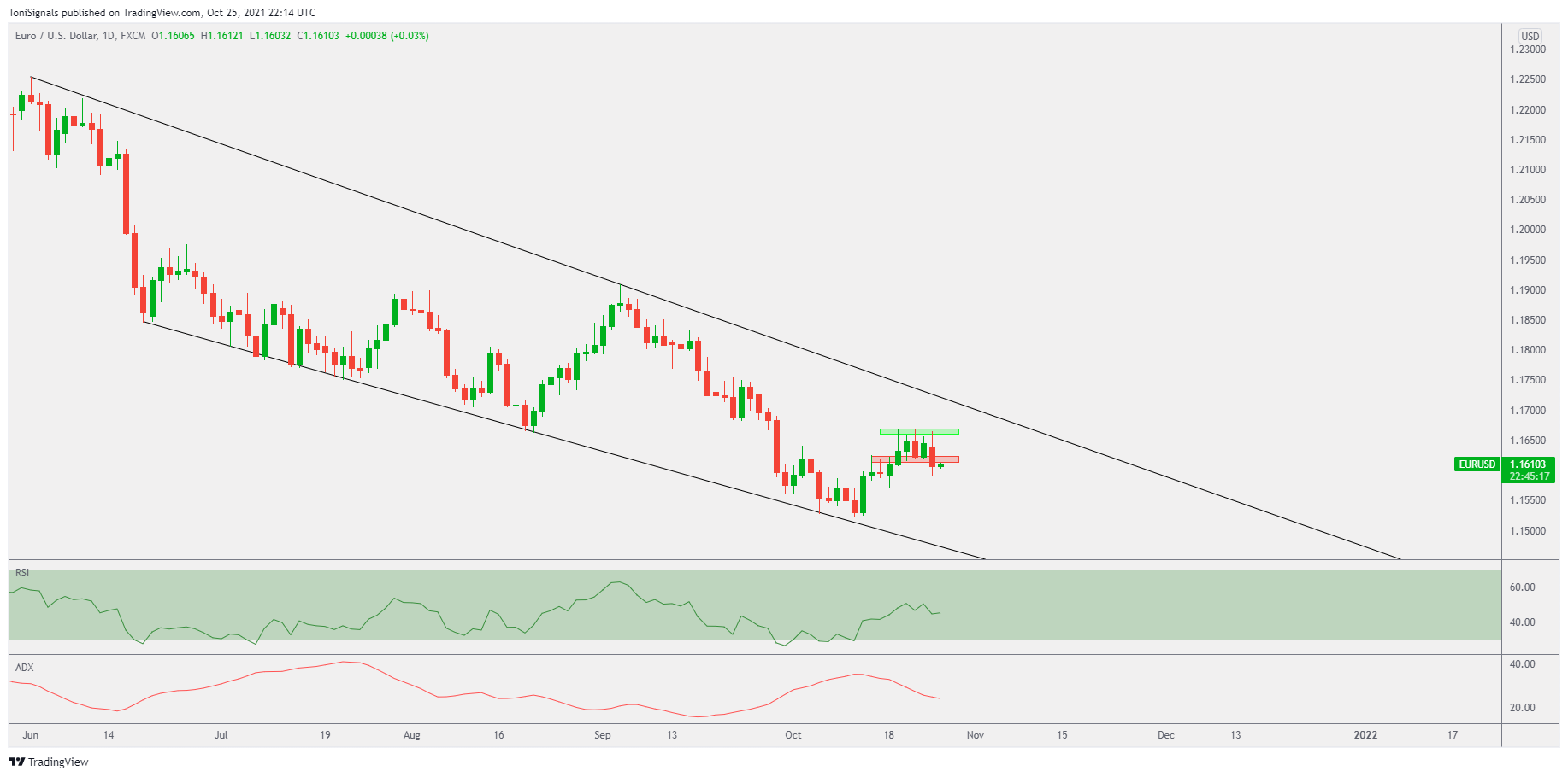 EURUSD has broken out of the range pattern to the downside, giving us a downside bias for todays trading. The RSI is holding below 50%, also pointing to the downside.