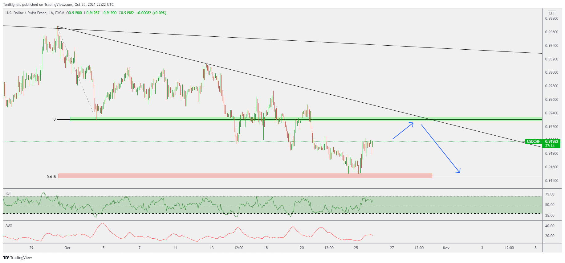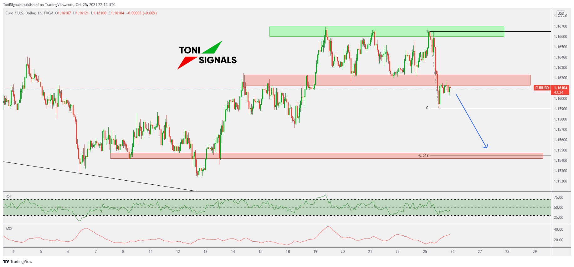 Price has done a break and retest pattern on the 1h chart, and we are looking for price to make a continued push into the 61.8% fibonacci extension level, which correlates with support.