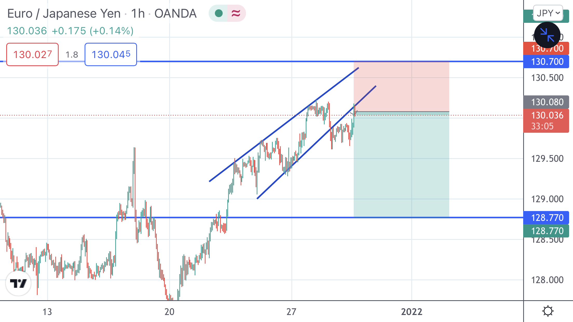 EUR/JPY is trading to the downside today. We anticipate a bearish move down to level 128.77