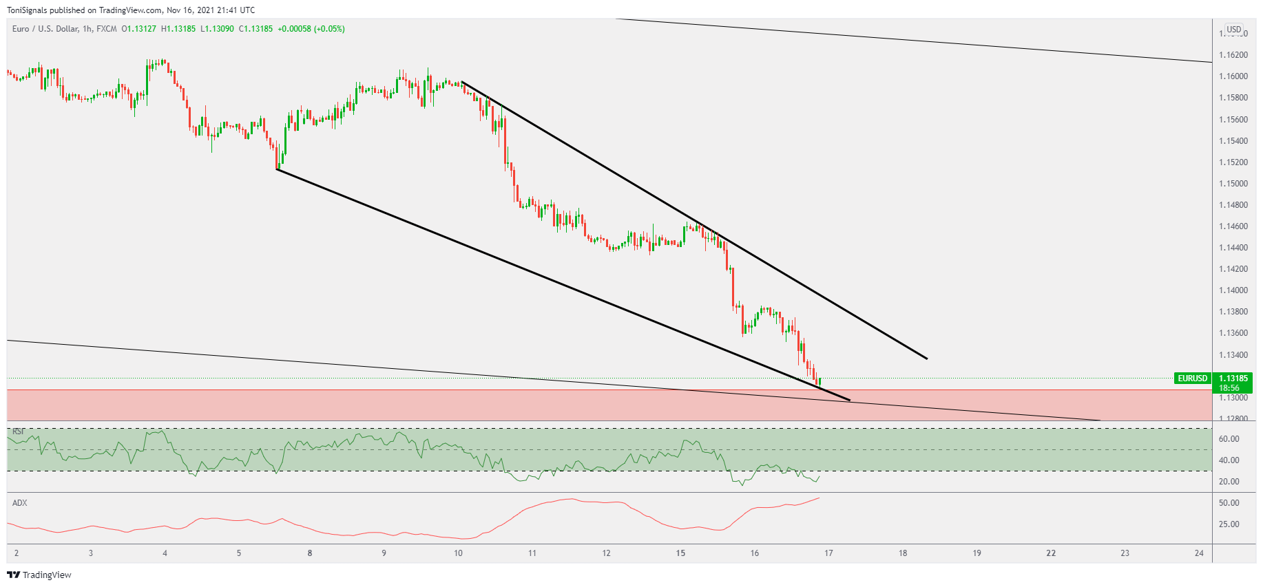 The RSI is showing significant bullish divergence and price has pushed into support. Looking for price to stabilise around the 1.1300 mark today.