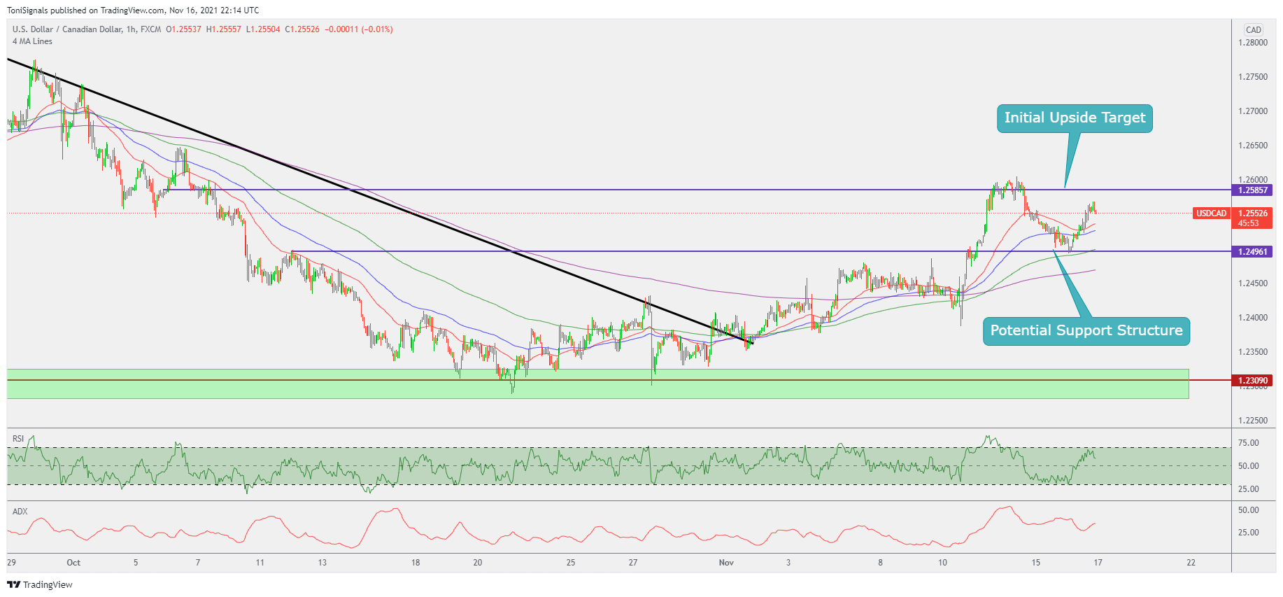 Price bounced from the support we outlined and is making a slight retracement. We are looking to continue trading this pair long, and any move into the moving averages as a potential entry.