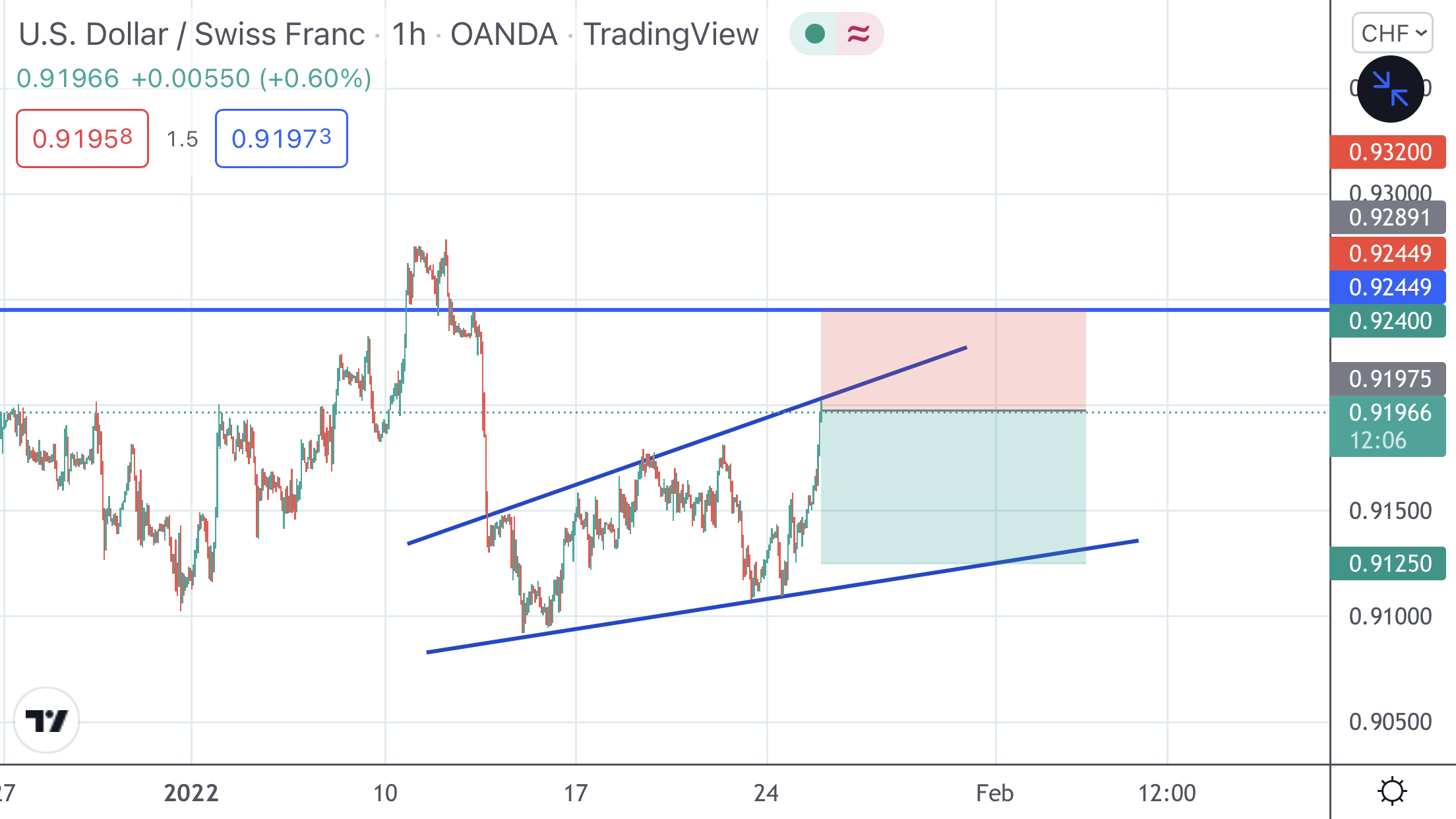 USD/CHF Signal-US 5-Year Note Auction-25 Jan 2022